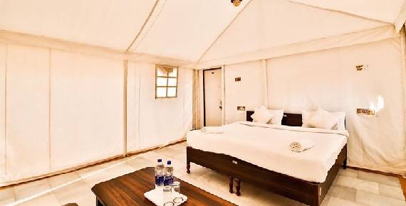 After Camel Safari Tour & Rajasthani Folk Dance Program & Dinner we Provide a Luxury Swish Maharaja Tent with Attach late Bath and Hot Water in Tent. In Tent Generally One Couple Accommodation and on Guest Requirement Two Extra bed Capacity in a Tent will Be Charged. Above are Including in Night Stay Desert Package Booking.